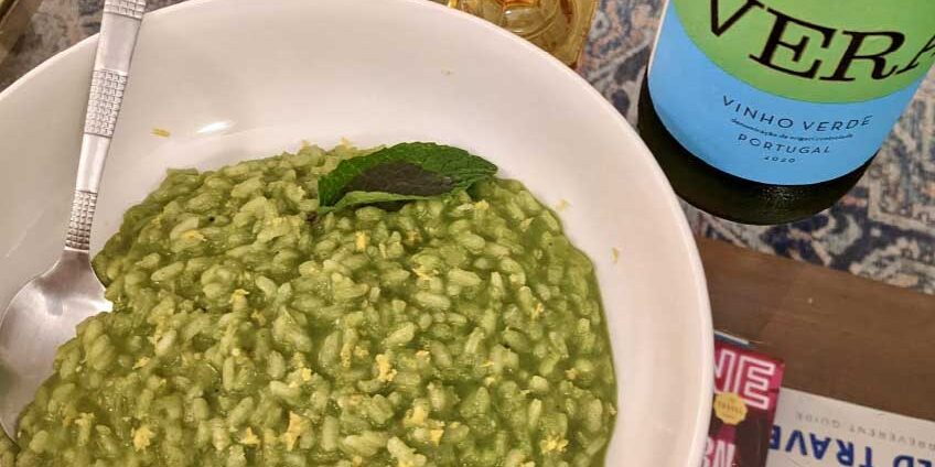 Now that you have some homemade broth, you’re ready to make some risotto. This one has a beautiful bright green color and goes great as a side dish or a main.